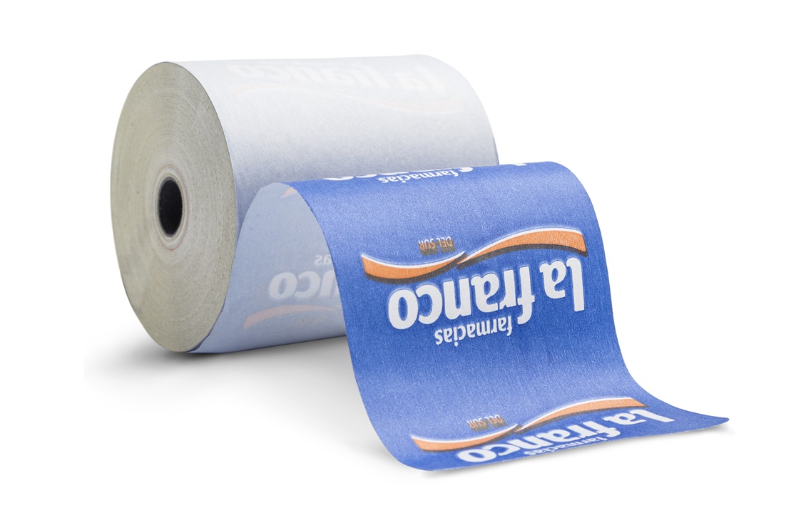 Imprimimos y personalizamos tu rollo de papel desde 1 hasta 4 colores con su logo en una o ambas caras. Sistemas de impresión offset (revisar datos).